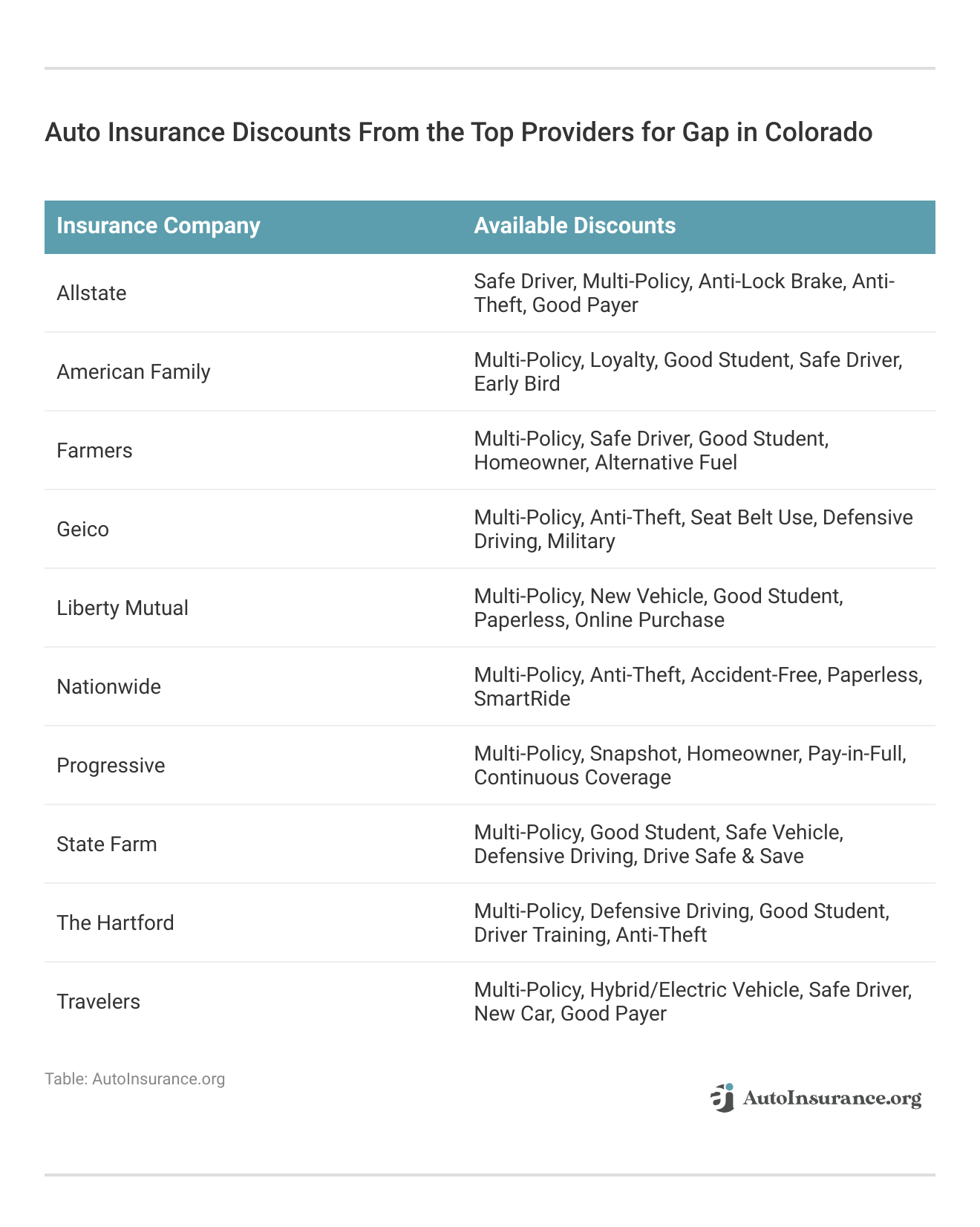 Securing gap insurance at a lower rate is possible through various discounts offered by the cheapest Colorado auto insurance companies: